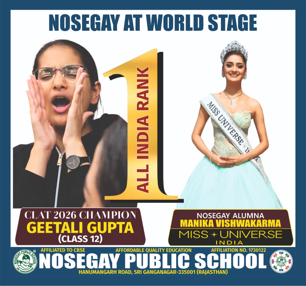 Nosegay Public School, established in 1985, is a leading English-medium, co-educational school in Sri Ganganagar, Rajasthan. Affiliated with the Central Board of Secondary Education (CBSE), New Delhi (Affiliation No. 1730122), the school is renowned for its academic excellence, discipline, and holistic development of students.